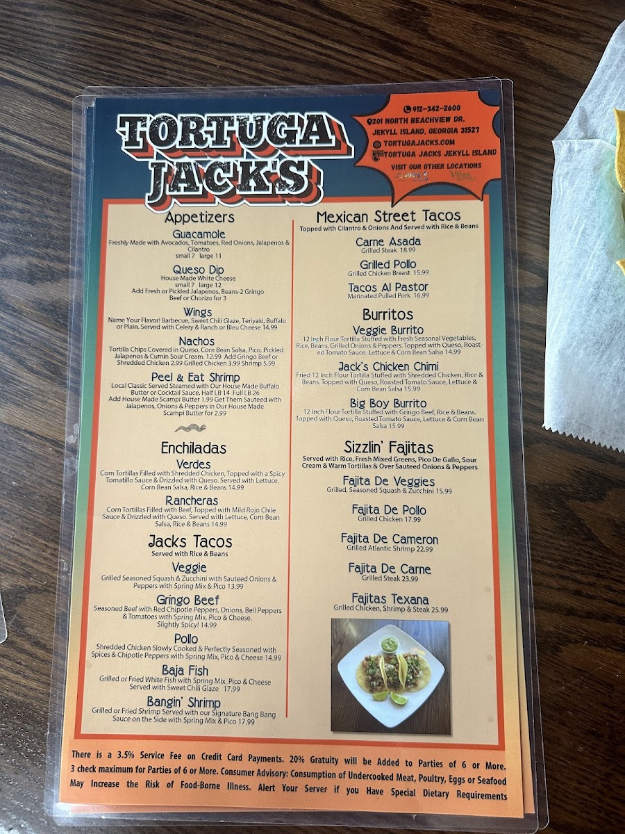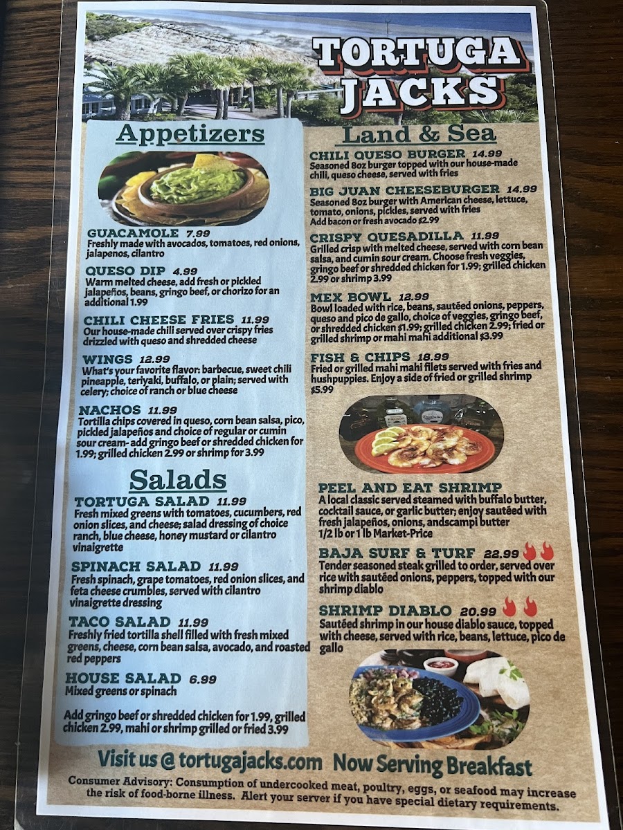 Tortuga Jacks Jekyll Menu (Update 2025)